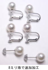 イヤリングとピアスは、ネックレスと色合わせして8ミリ珠で加工することに