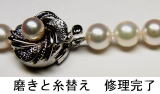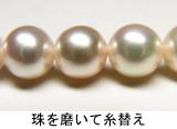 今回は、真珠の汚れを取り、同時に糸替えもしました