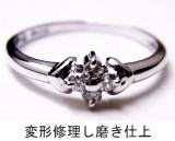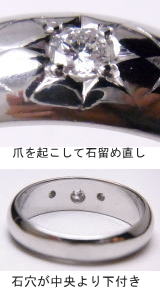 精査してみると、この指輪はダイヤを左右の地金で挟んで石留めしていますが 少し変形を生じています