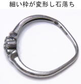 このタイプは、少しでも枠が変形すると石穴が開き 石留めが甘くなります