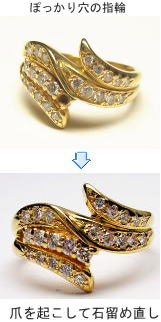 その部分にしっかりした爪を立てて、石を留め直すことになります