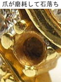 そこに爪を立てて石留めしているので、石と爪の関係が正常ではなく、そのひずみで爪が折れて石落ちしたようです