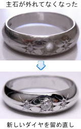 結婚22年、お付き合いしてた頃に1番最初に貰った指輪のダイヤが無くなってずーっとつけてなかったのですが直していただけるなら、またつけたいんです。