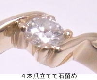 「この指輪は 二点留めで石を挟んでいるだけですので よじれたりすると 即石落ちにつながる構造です