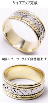 複雑な編み目なので継ぎ目が多少不自然な仕上がりになっても構いませんし、厚さのある指輪なので内側を削ってのサイズアップでも構いません。