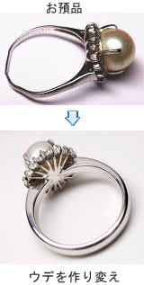 元の形は残したままで、立派な真珠の指輪に変身