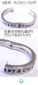 ティファニーバンドリングpt950の3石付きと、一緒に着けたダイヤリング 2本とも切断しました