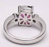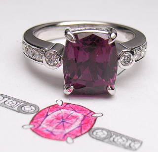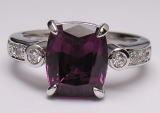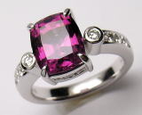 一つはルベライトのリング、暗赤色の角石で脇石にメレダイヤが付いています。