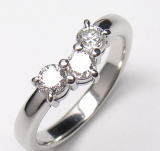 この作品は、ダイヤ3石はもちろんのこと、お預りの甲丸リング枠と元のダイヤリング枠を溶かして再利用して、新しいダイヤリング枠を手作りしていますので、加工賃だけで完成です。