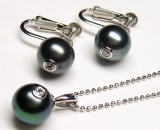 こうして出来たのがこの 黒真珠ダイヤ埋め込みイヤリングとペンダントのセットです